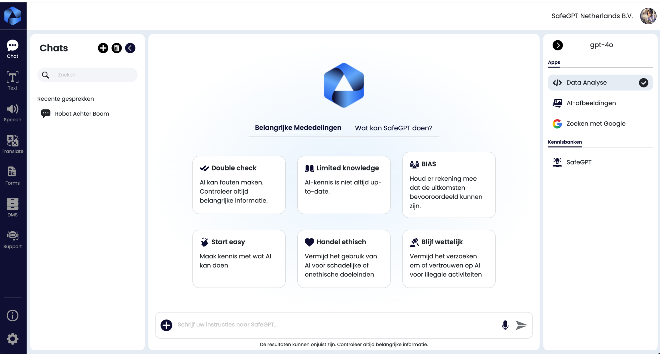 Get Started: If you have any questions, please do not hesitate to contact us. You can find our contact information at Safegpt.nl/contact.