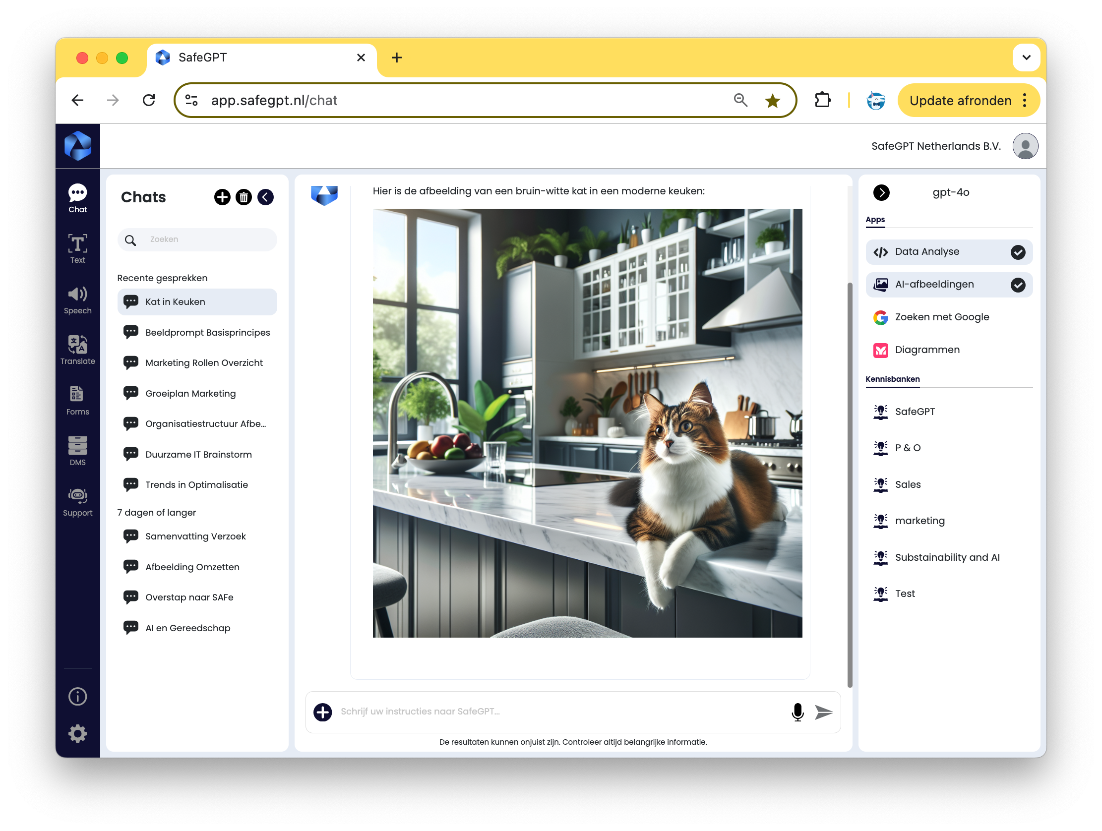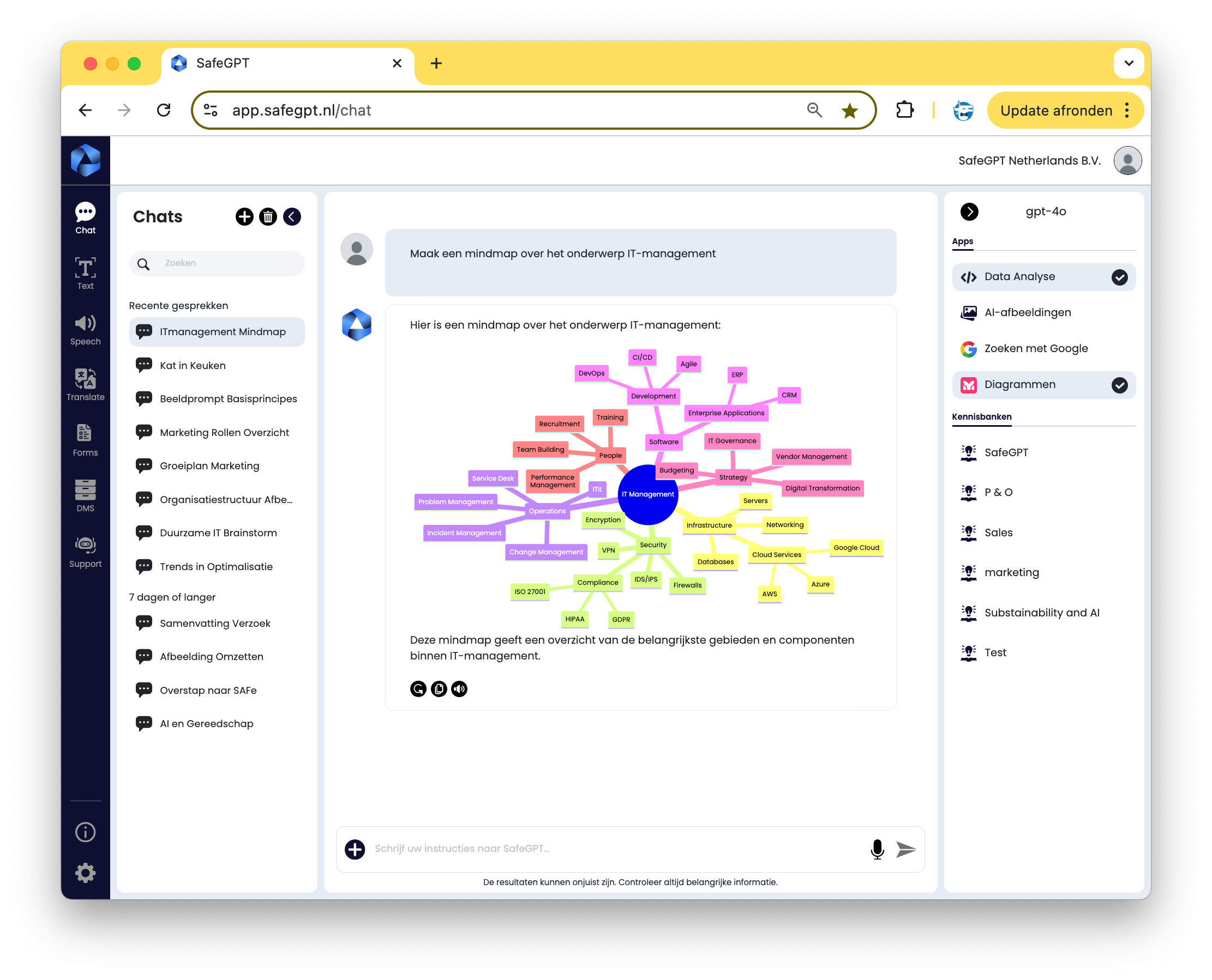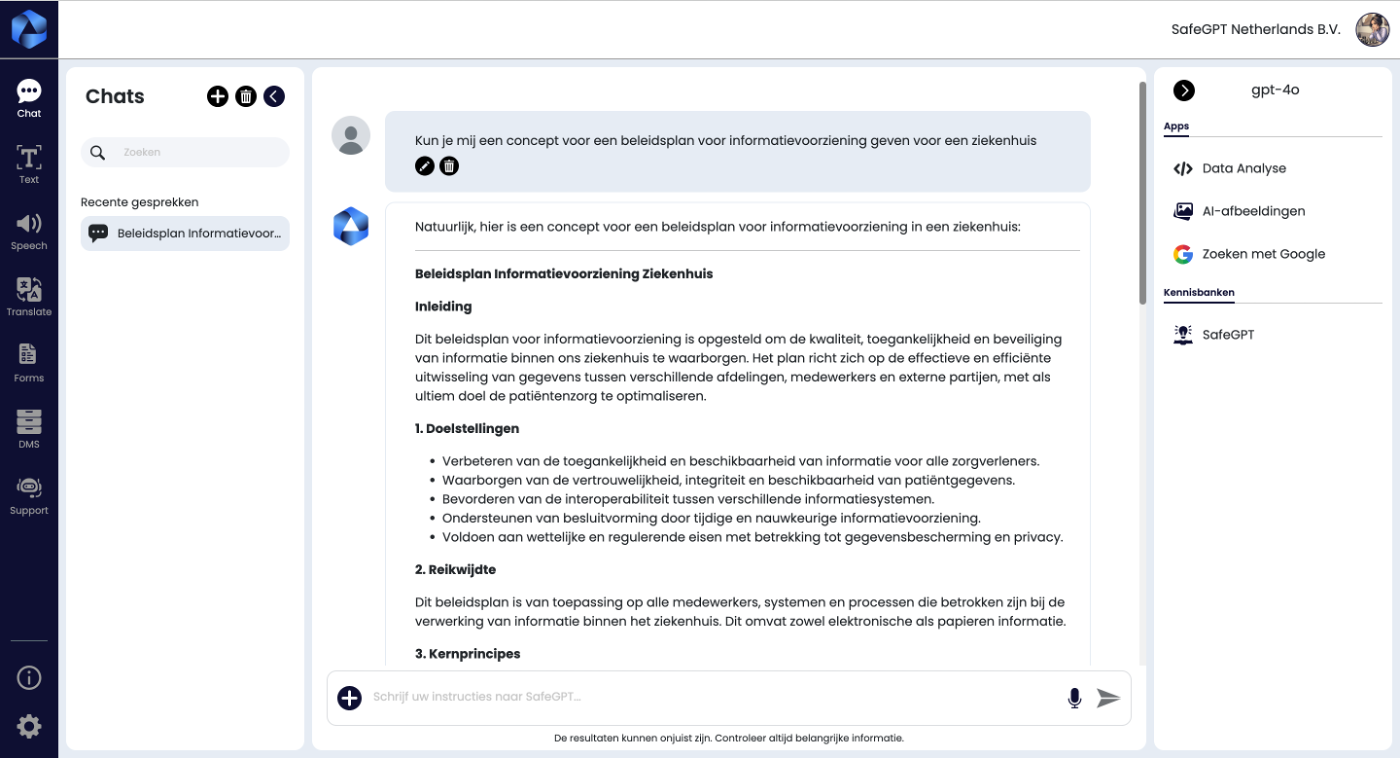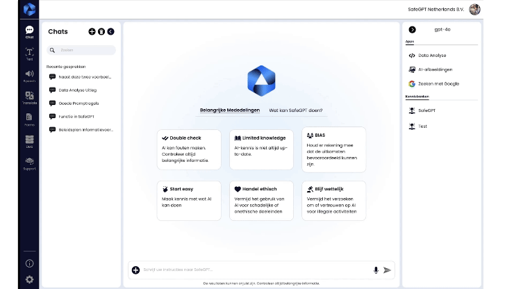 Use SafeGPT Chat as a virtual assistant or helpful colleague. With this feature, you primarily generate concepts and ideas by questioning the chat. Let yourself be inspired and assisted.