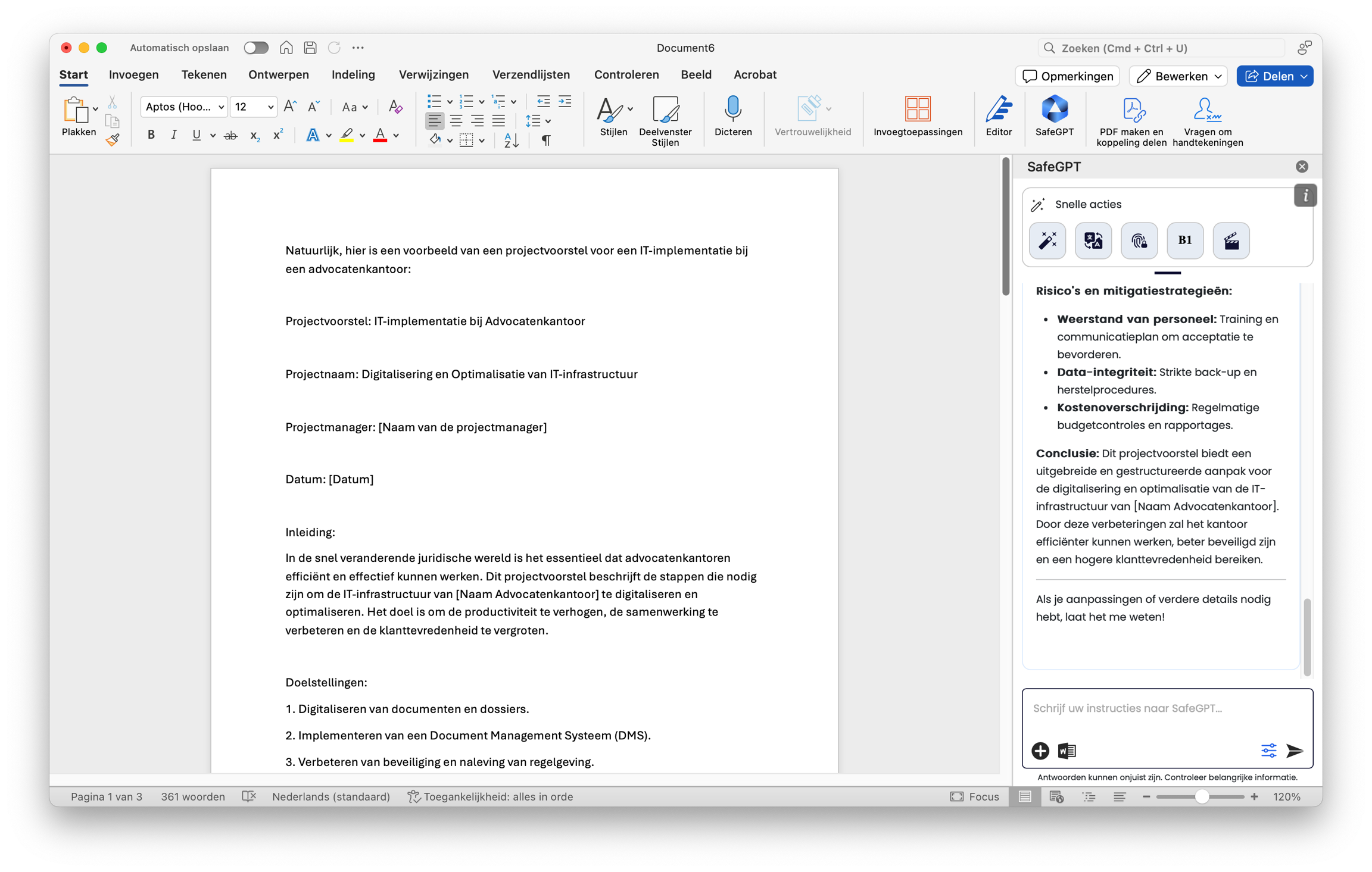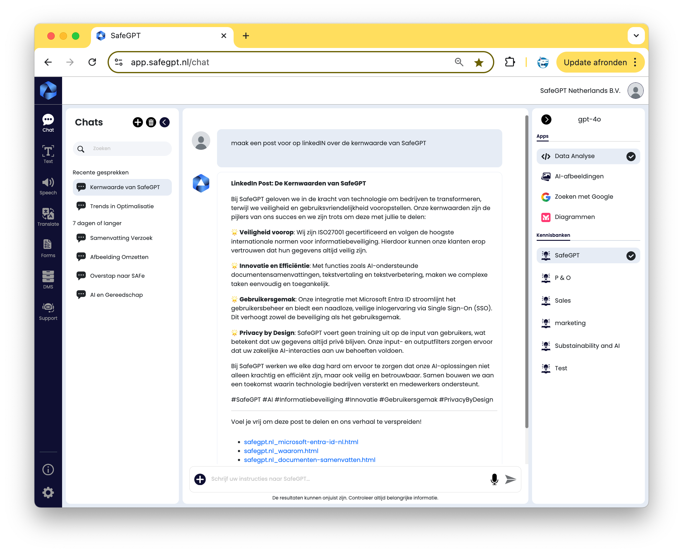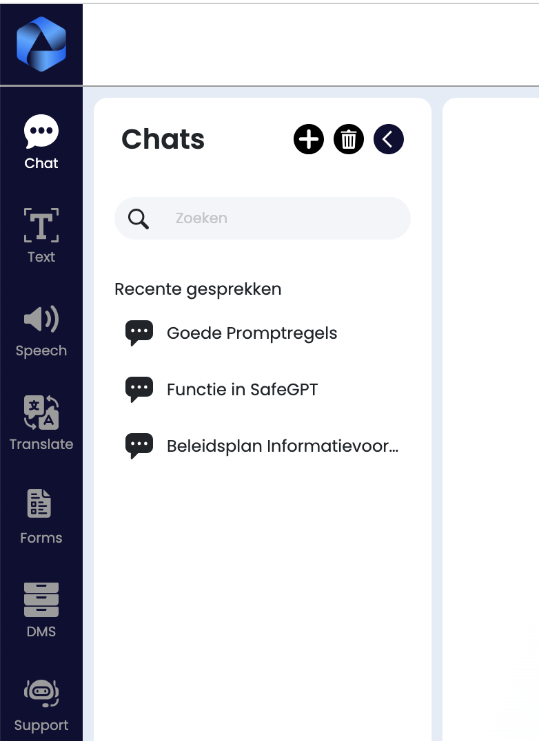 The basis of SafeGPT is the AI-supported chat feature. You can find the chat in both the web app and the add-in.