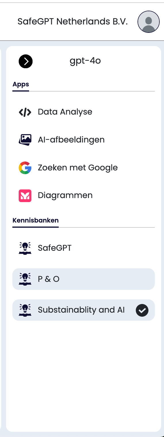 At the level of organization and teams, you can create knowledge bases. You can find out how to do this in the documentation on Configuring Knowledge Bases. Activate a knowledge base to consult specific content from the knowledge base using the chat function of safeGPT.
