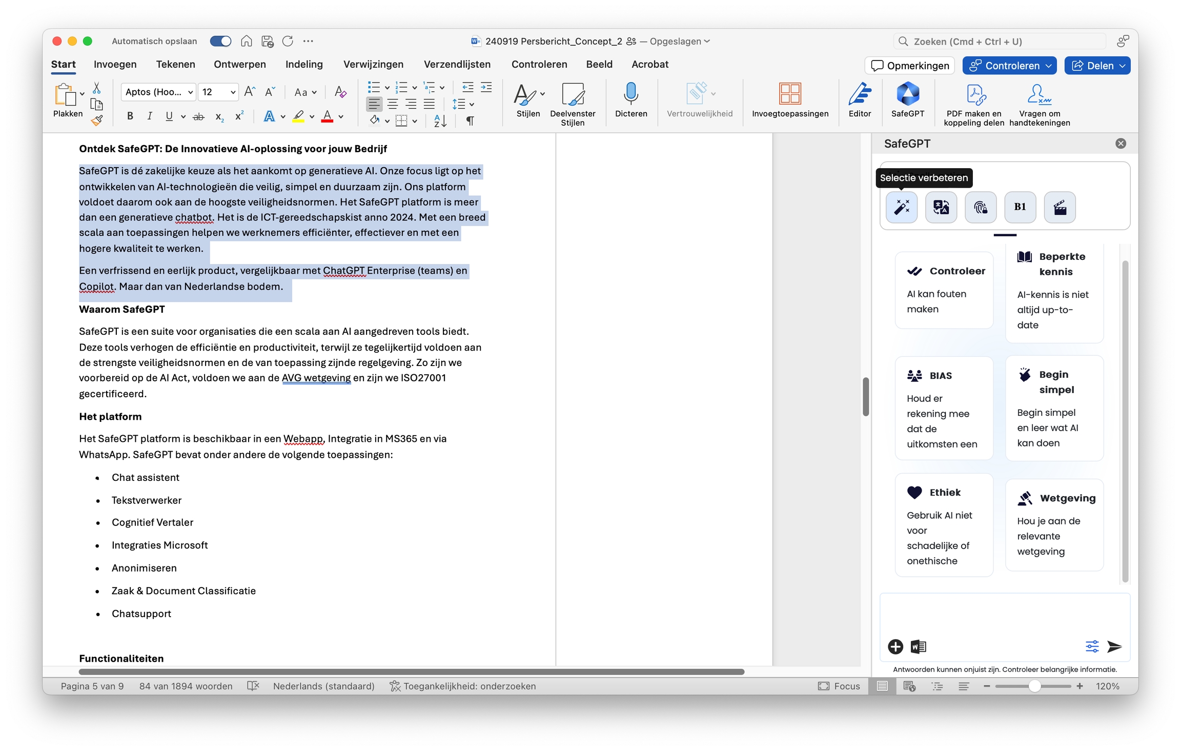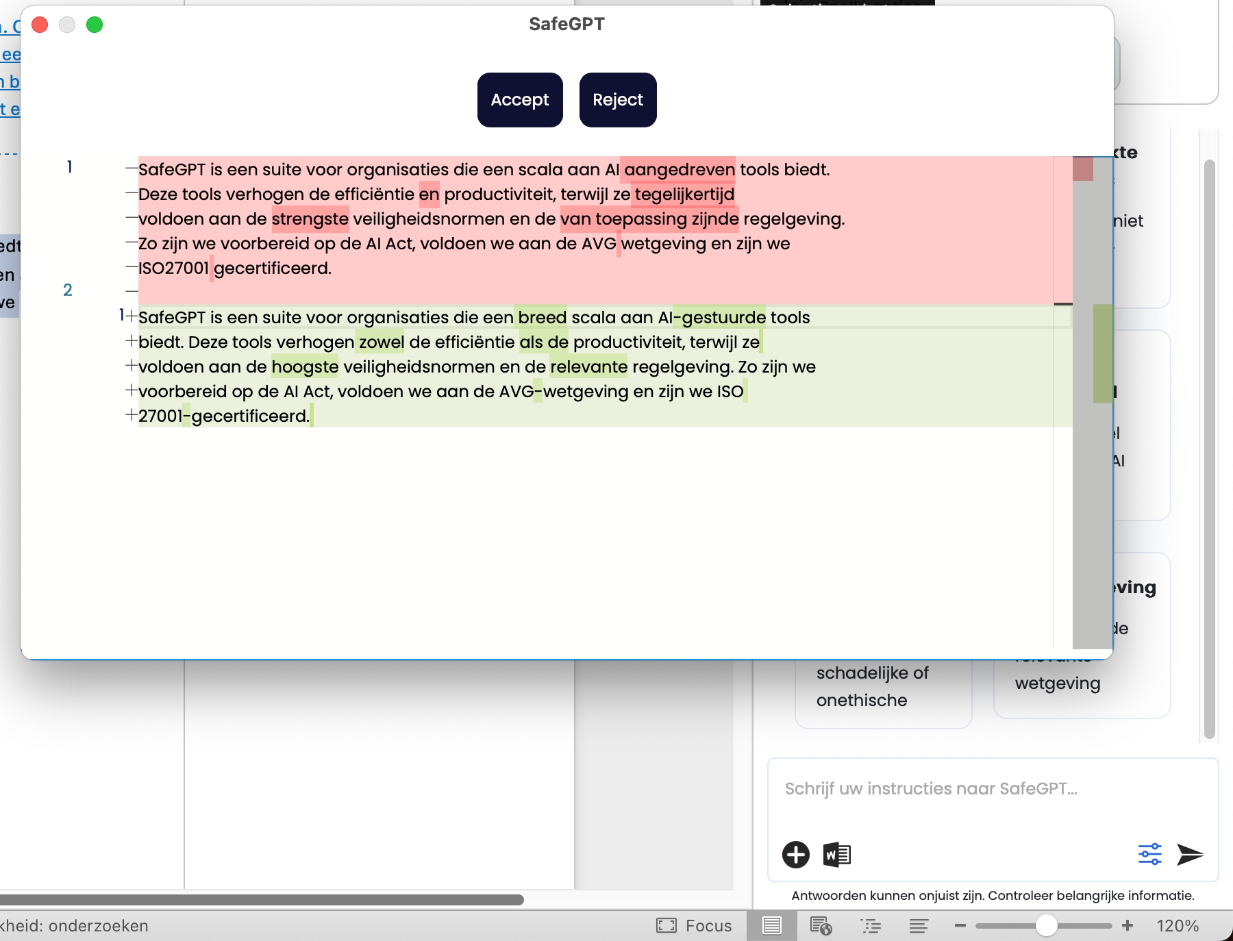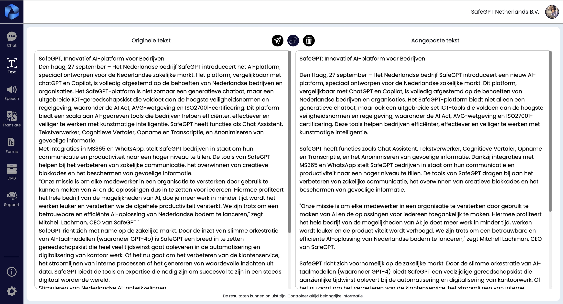 The text will be improved immediately. Want a preview first? Select the option to show preview in the settings of SafeGPT, and a comparison page will appear between the old text and the new text.